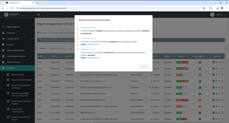 Mejora el proceso en la gestión de requerimientos, órdenes de compra e ingresos de almacén. Este sistema centraliza, automatiza y facilita el seguimiento y control de todos los procesos internos en la gestión de compras optimizando la toma de decisiones para potenciar el rendimiento de tu organización.